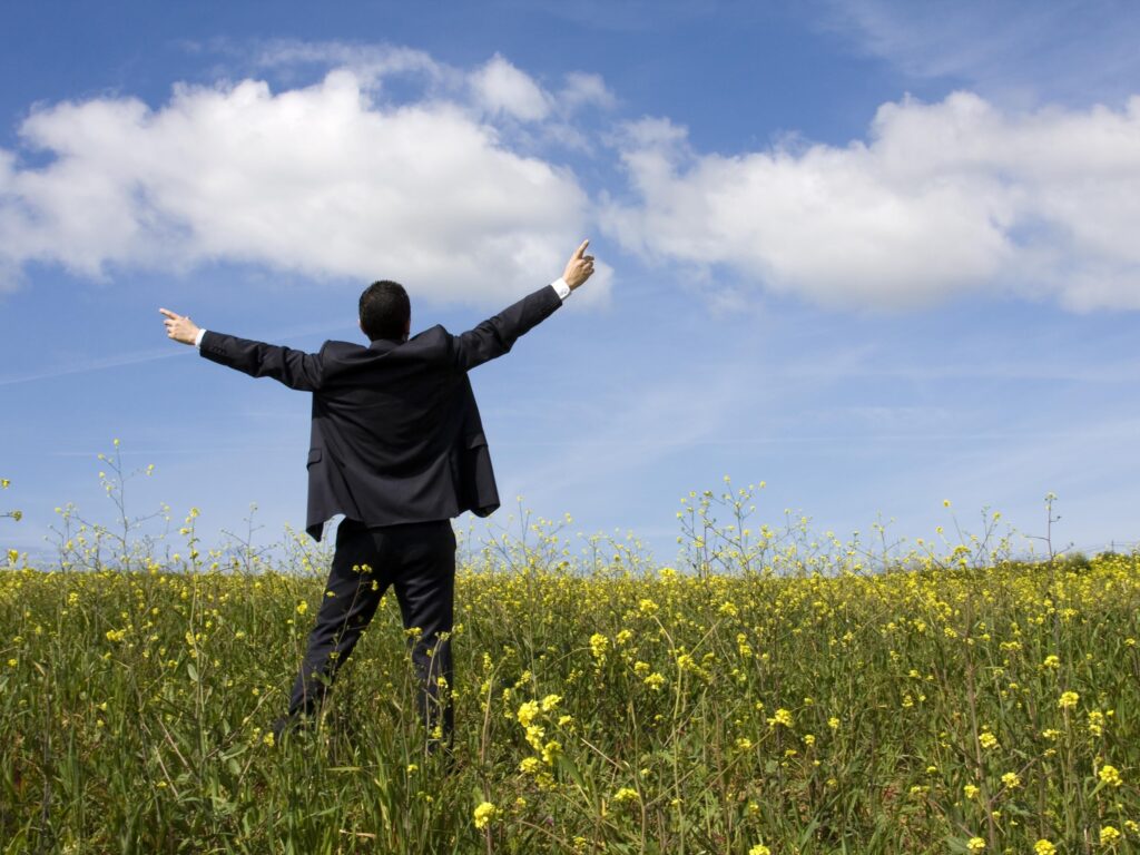 [Image 3: Gratitude – A person standing on a mountaintop, arms wide open, expressing gratitud